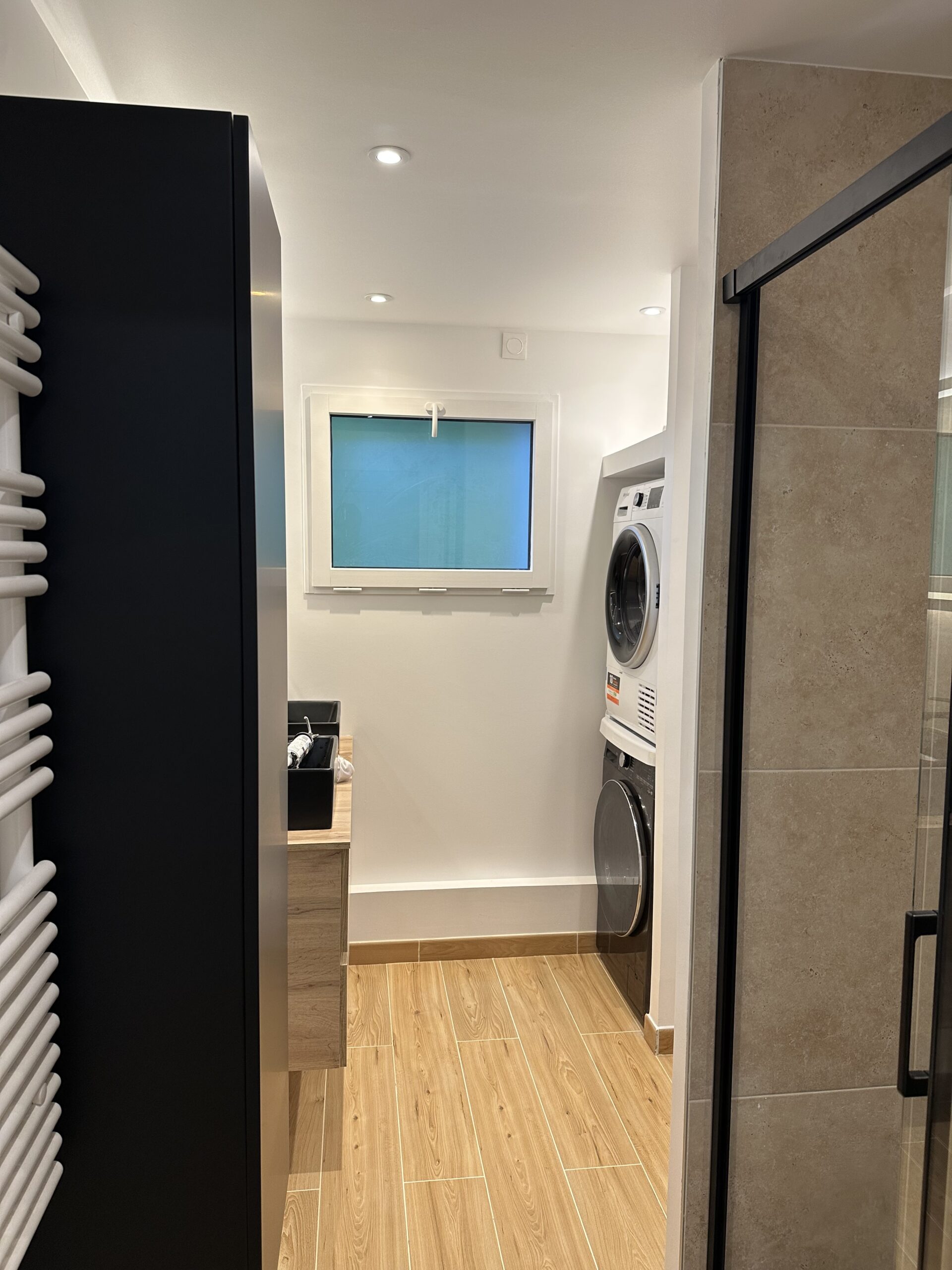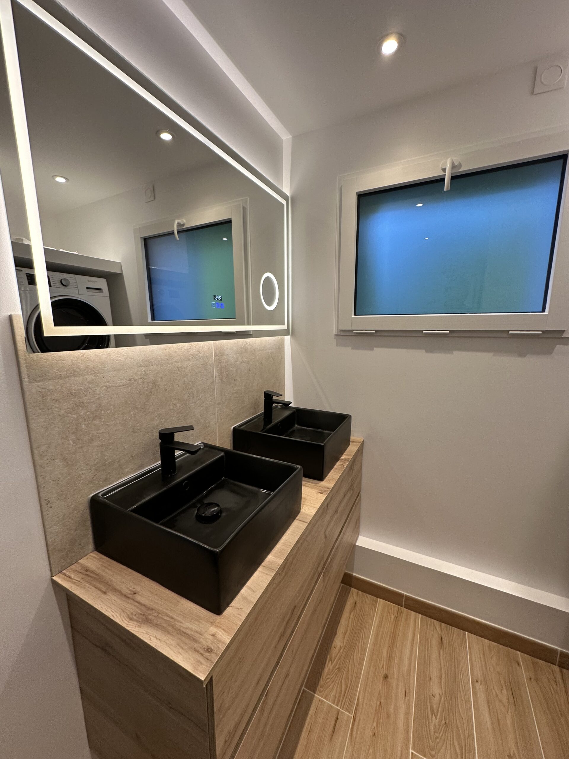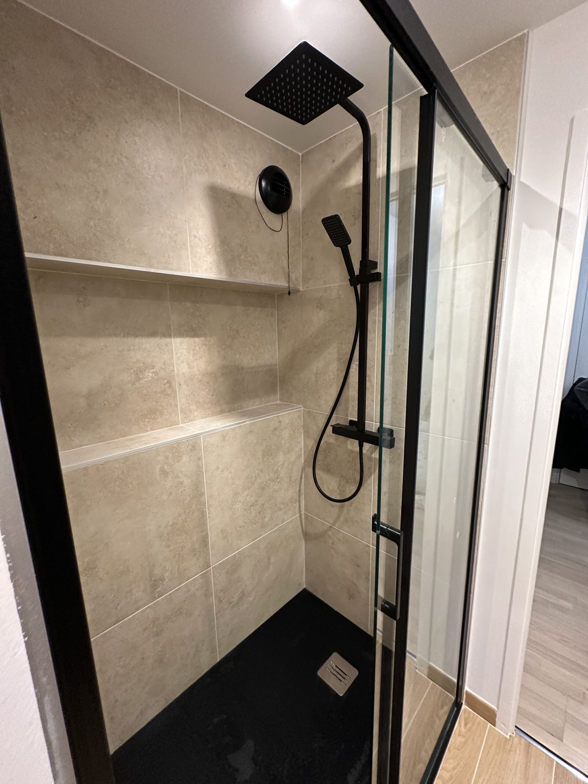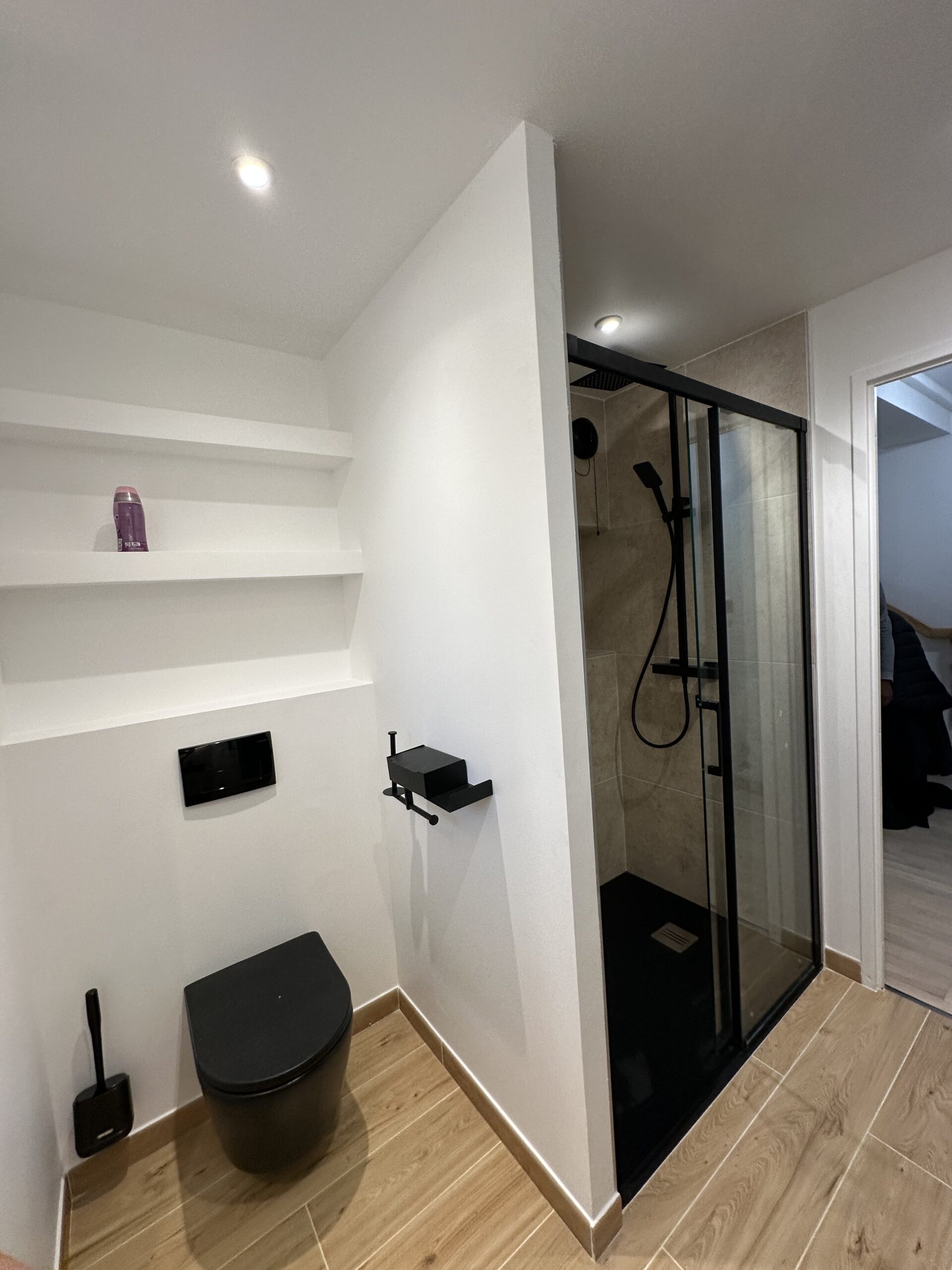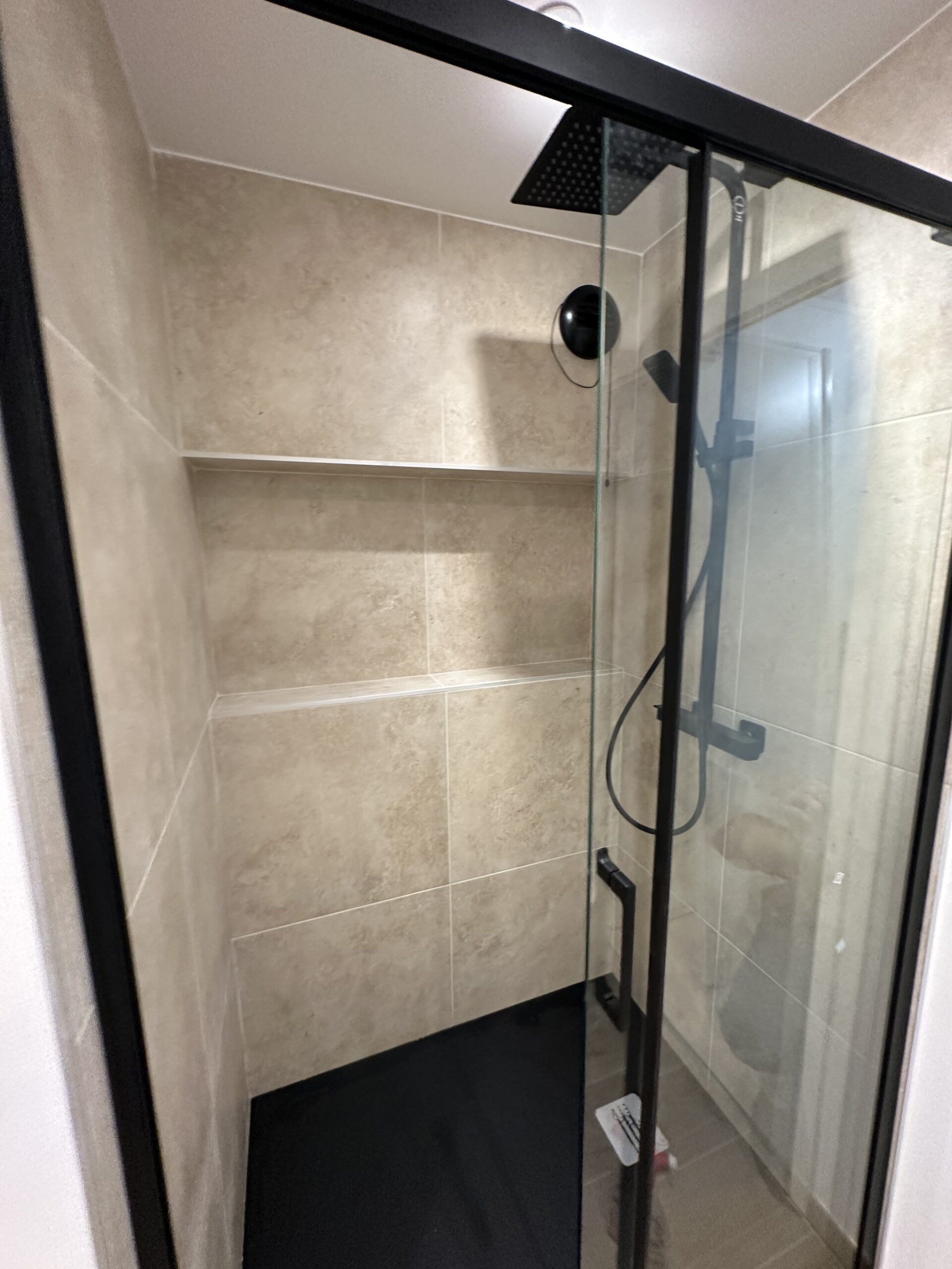 Pour ce projet de rénovation salle de bain à Massy, nous avons transformé l’espace en un lieu moderne et fonctionnel, mettant en avant une douche à l’italienne sans seuil, idéale pour le confort de tous. Notre équipe a sélectionné des matériaux de qualité et des finitions soignées, tout en optimisant l’espace pour un design contemporain et élégant. Cette rénovation reflète notre capacité à créer des salles de bain sur mesure, alliant praticité, esthétisme et durabilité.