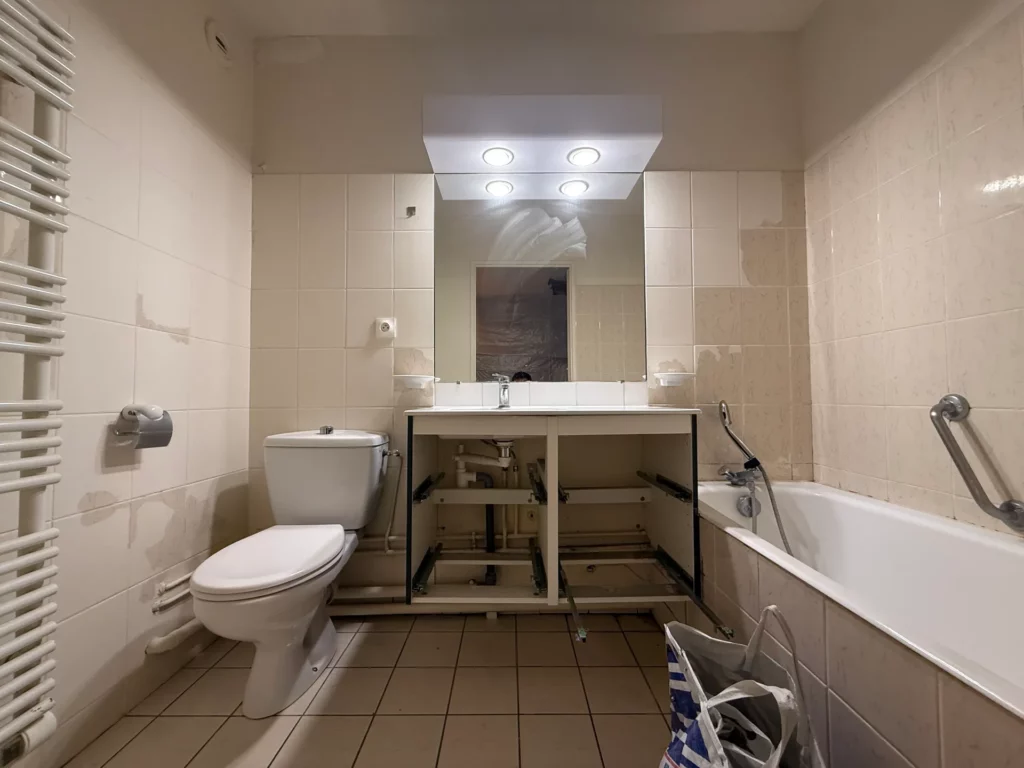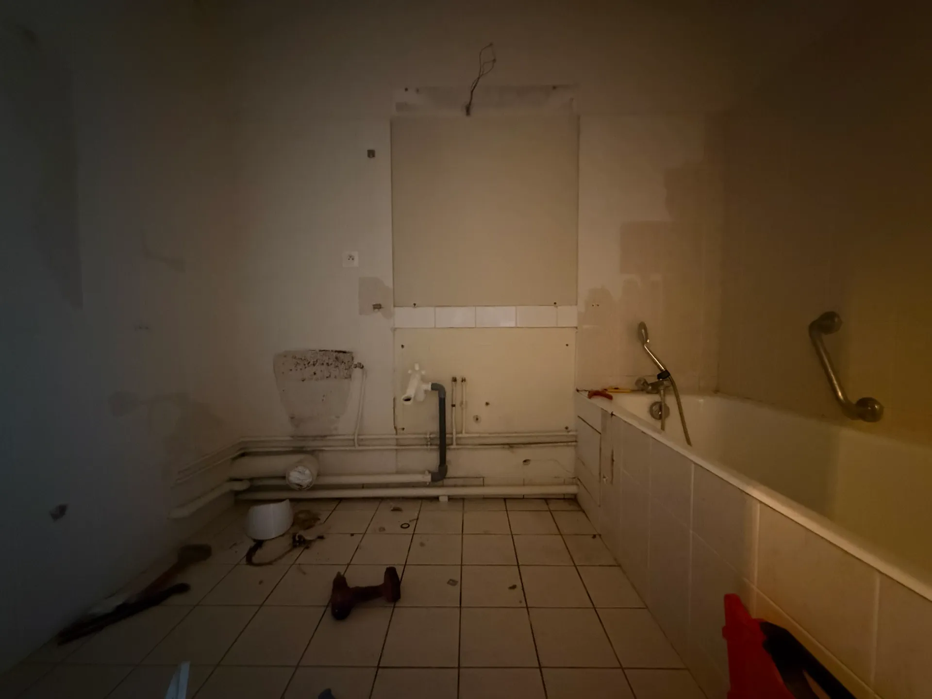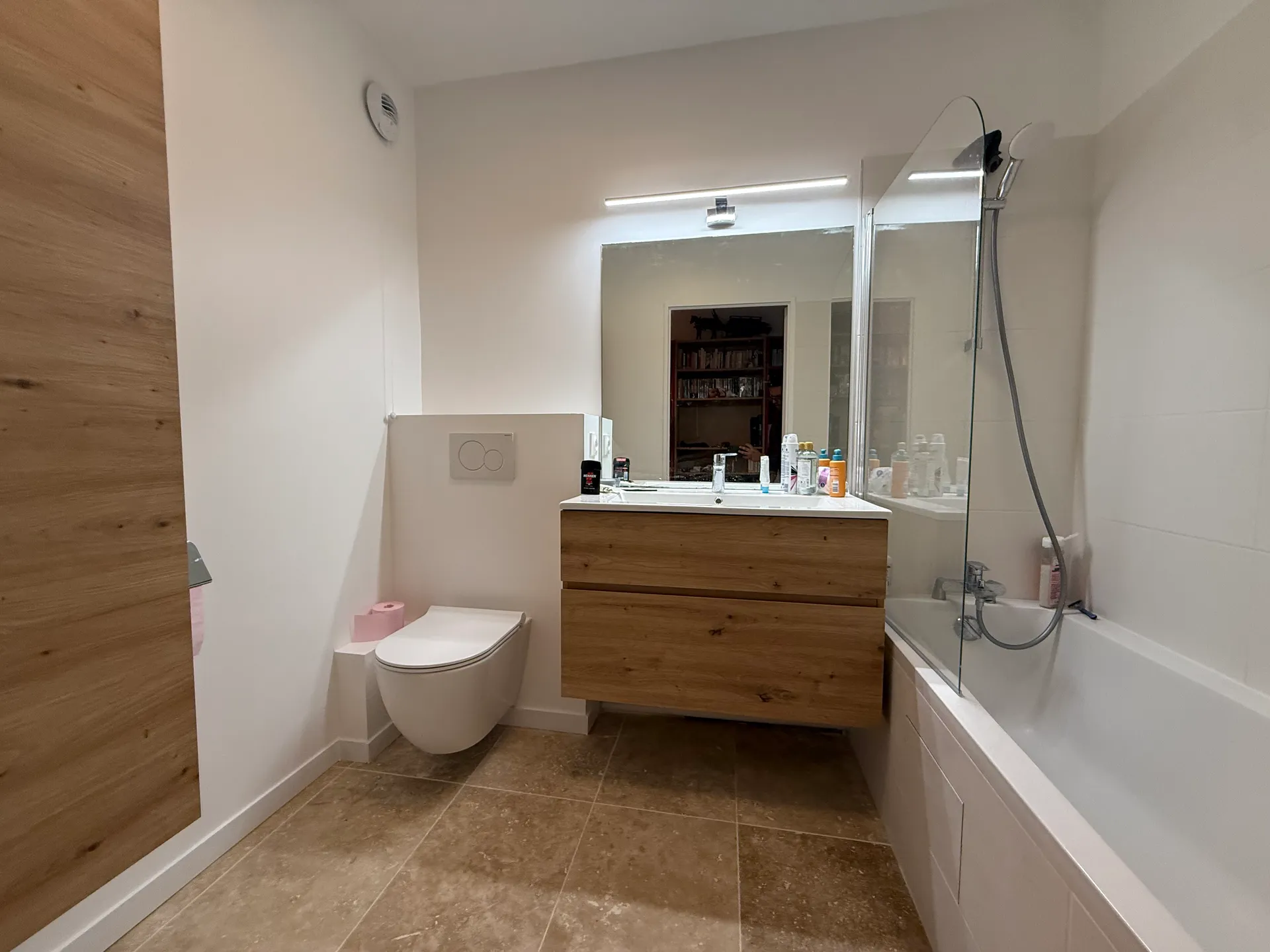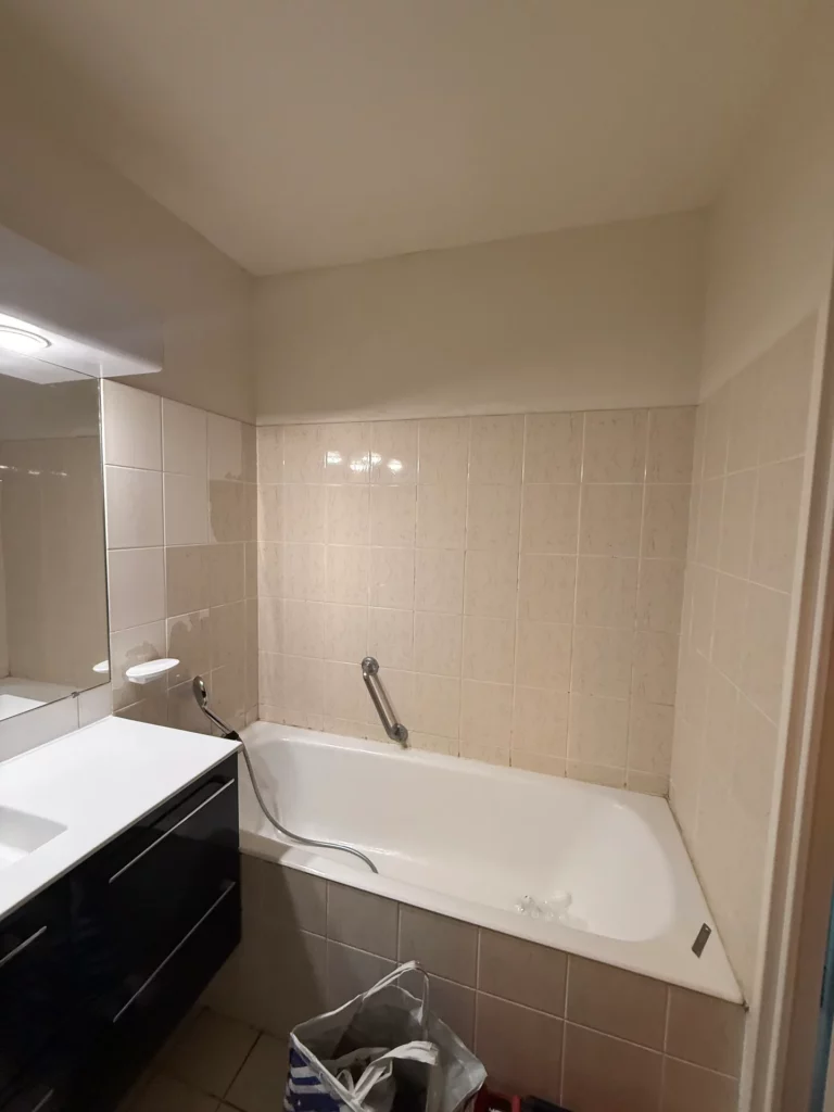 Notre équipe a assuré l'ensemble des corps de métier : pose de carrelage mural et au sol, travaux de plomberie avec installation d'un WC suspendu, mise aux normes électriques, peinture et finitions soignées.